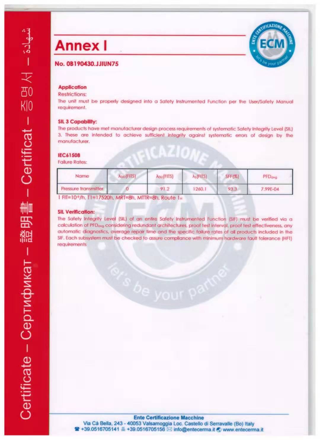 以下圖片為金湖金普儀表獲得的SIL2認(rèn)證,該證書(shū)證明了變送器質(zhì)量?jī)?yōu)秀,獲得廣大用戶認(rèn)可。