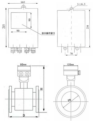 五、電磁流量計外形尺寸圖: