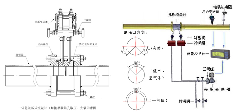 5.一體型孔板流量計安裝更簡單,無須引壓管,可直接接差壓變送器和壓力變送器。