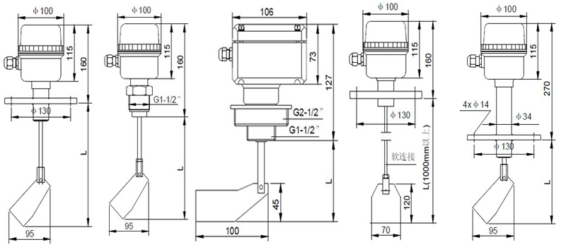 4.高溫型可在≤300℃的物料環(huán)境下使用。