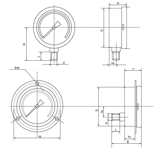 | 型 號 | D | H | H2 | B | D2 | d0 | d | L | H1 |
