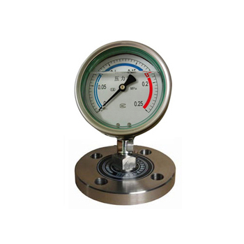 隔膜壓力表的耐蝕性:隔膜壓力表的耐蝕性能包含環境及測量介質的腐蝕特性,可按使用條件選配隔離器,隔膜,密封墊圈的材料。